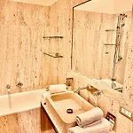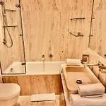 Este apartamento ofrece a los huéspedes acceso a una zona de estar con un sofá blanco, y comodidades como climatizador, que garantizan una estancia agradable y relajante. La habitación está equipada con TV y TV de pantalla plana con canales vía satélite para el entretenimiento de los huéspedes. Este establecimiento incluye 2 dormitorios. Este apartamento dispone de 2 baños con un bidé, bañera y ducha, así como secadores de pelo y toallas.
